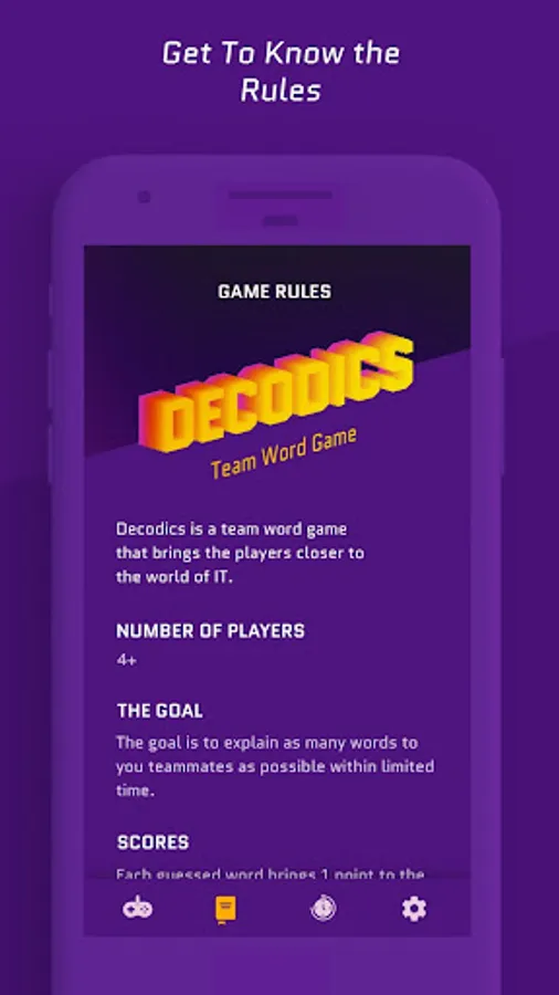 The game challenges the players to describe and guess thematic words in limited time to their teammates without using translations, words with the same root and gestures.