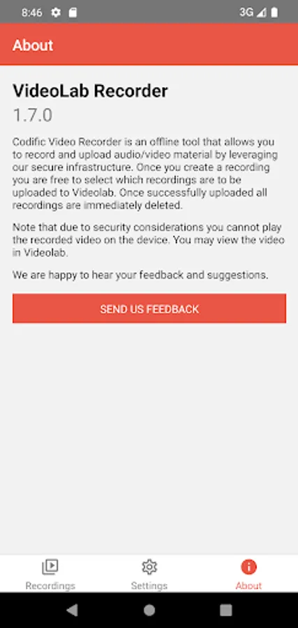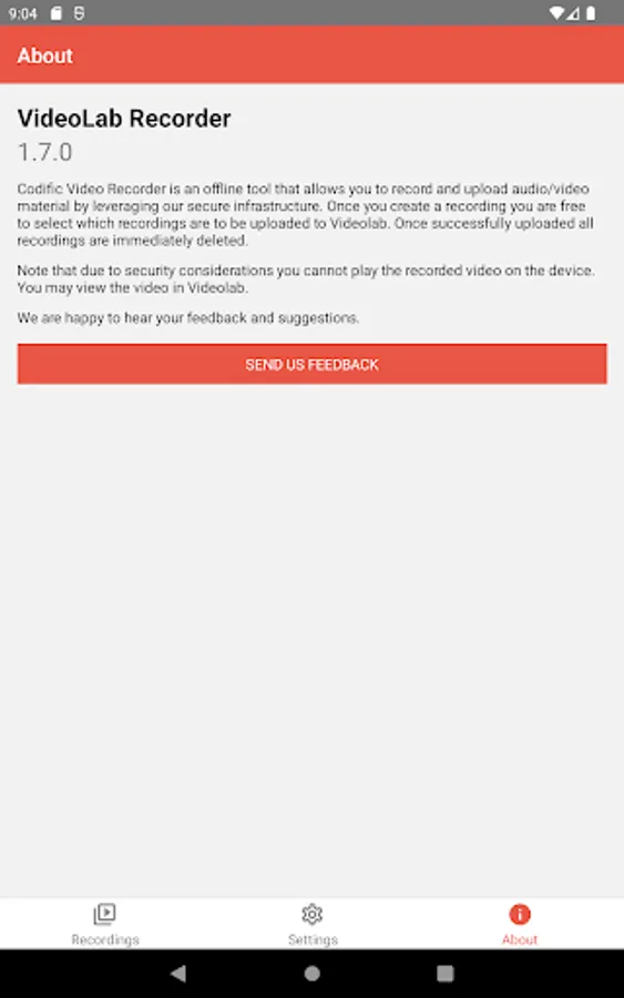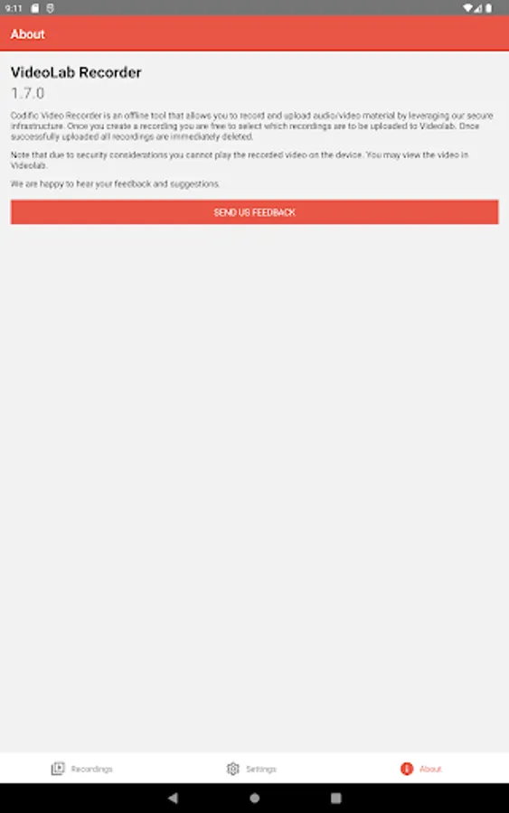 Videolab Recorder allows Videolab users to create secure recordings and upload them to the Videolab cloud. We provide physical guarantees for the end-to-end security of all your recordings. Videolab Recorder supports audio, video and still image recordings.