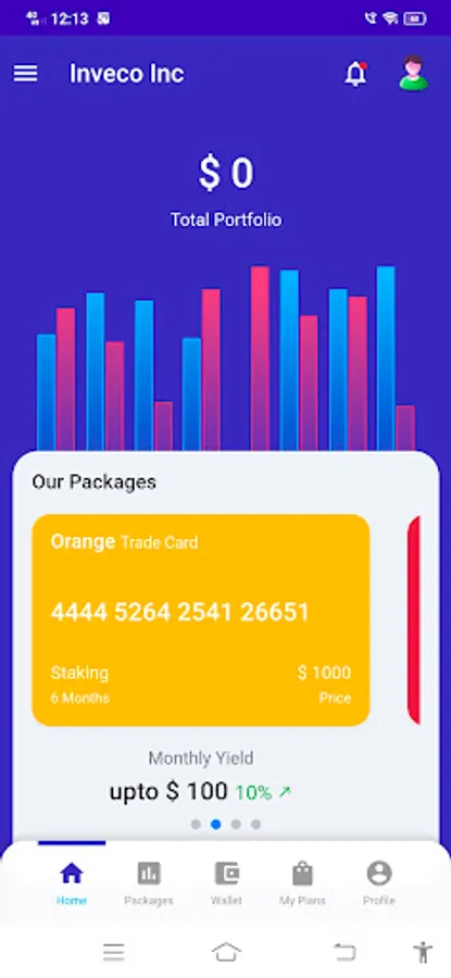 Inveco Trading provides a user interface which allows us to keep tracking on our trading account in crypto and forex. It is a premium application which is available with various packages listed in the applications demo account.
