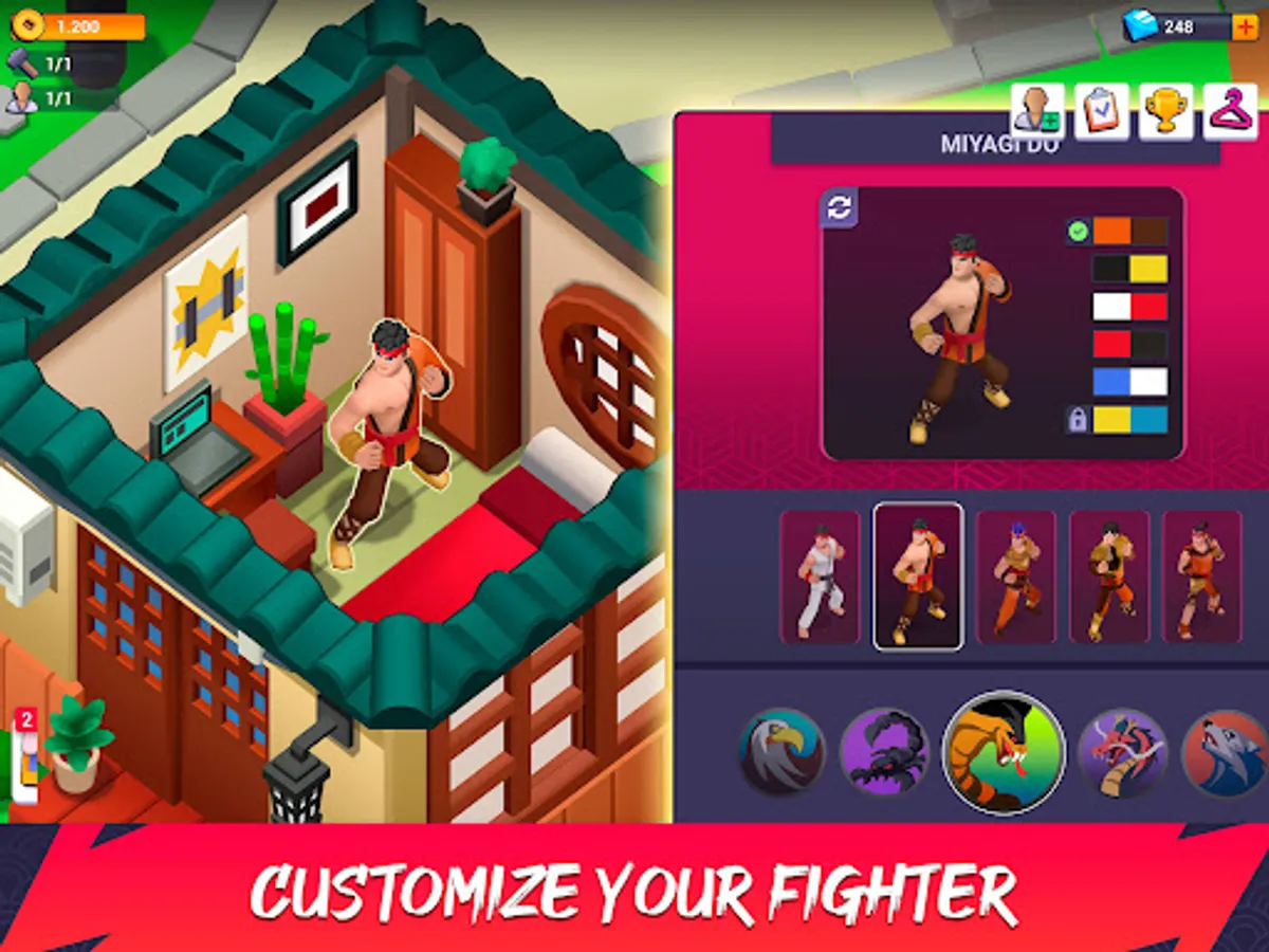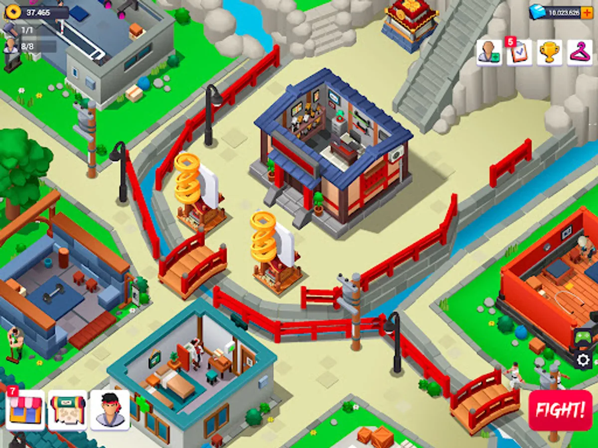 Start managing a small training center and work hard to train the best fighters in the world. Make them participate in competitions, reinvest your earnings in expanding your dojo, and improve your student’s abilities and Martial Arts special techniques!