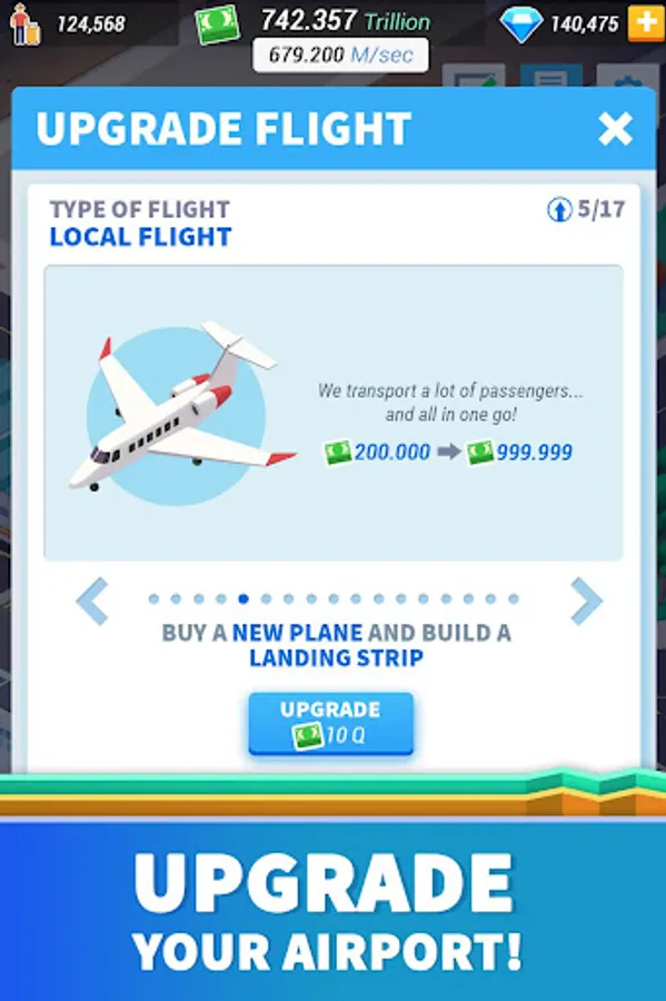 But the fun doesn’t end there. Continue your tycoon adventure by selling your airport and building a new one. You will start over, but this time with all the business know-how previously acquired. The new airport will grow faster and be more profitable thanks to your accumulated experience.