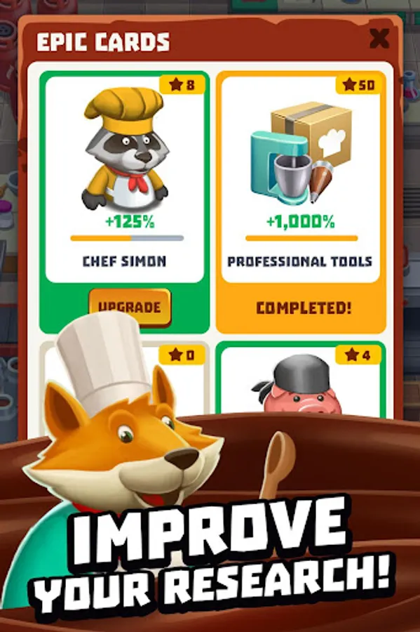 Creating a bakery empire requires a good business strategy and good products, so don’t forget to invest in Research & Development. The scientific department is always ready to bring exciting new technologies to the cooking world. Finance their wild research and make the most of their knowledge to improve your bakery.