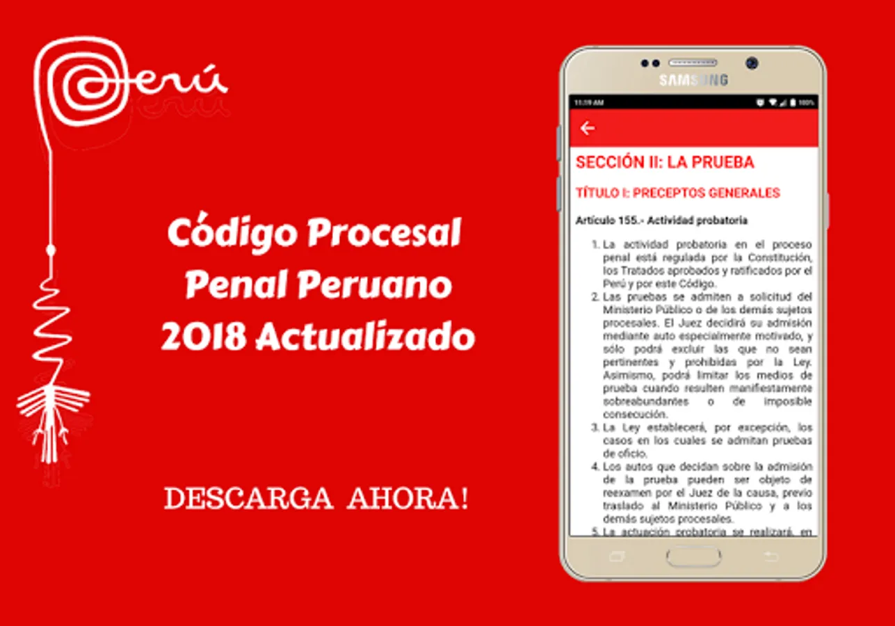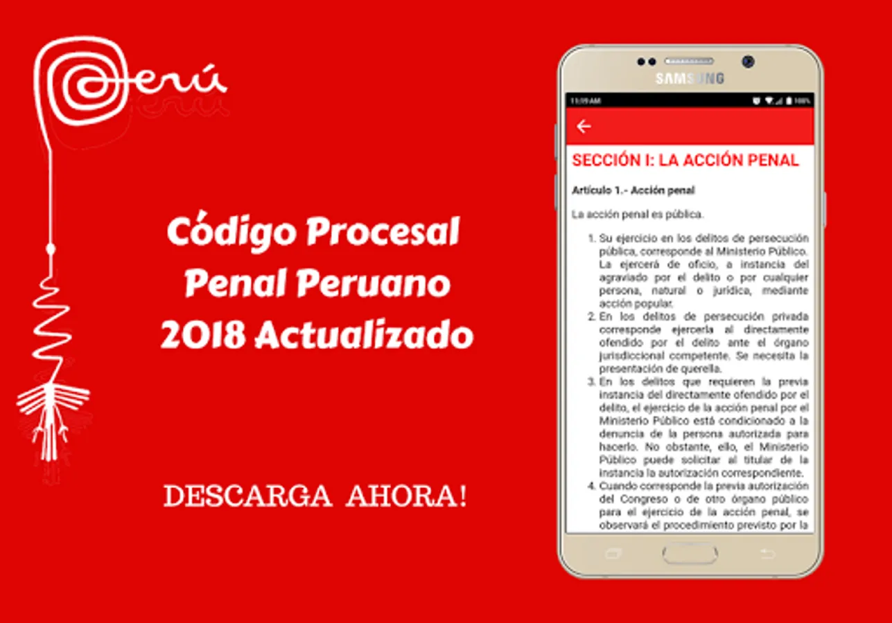 Download the new application & oacute; n c & oacute; say Peruvian criminal procedure 2018 & nbsp; Available for Android devices . C & oacute; say criminal procedure Peruvian 2018 is an application & oacute; simple n with a nice, friendly & nbsp interface; content educational and cultural recommended for students, professionals and every citizen must & iacute; a Cognizantability our c & oacute; say Peruvian criminal updated & nbsp; which is of vital importance, since it learn to claim our rights fundament & aacute; ndonos in the laws and regulations that empower us all Peruvians Take it with you anywhere your C & oacute; I say criminal procedure Peruvian 2018 updated digitally and avoids carry books f RIVER musicians with you, Adem & aacute; s to share it with your friends and family dare of social networks. If you have questions or suggestions about your application & oacute; n C & oacute; say Peruvian criminal procedure 2018 can write to freyesculquiapps@gmail.com and delighted we solve . Do not think m & aacute; s and Download now your C & oacute; I say Peruvian criminal procedure 2018 for free! & nbsp;