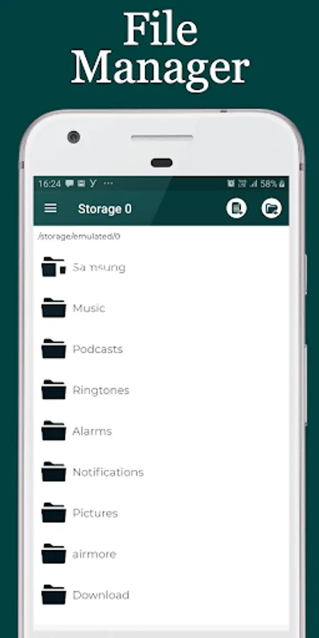 File manager explorer allows you to browse your SD card, create directories, rename, copy, move, and delete files.