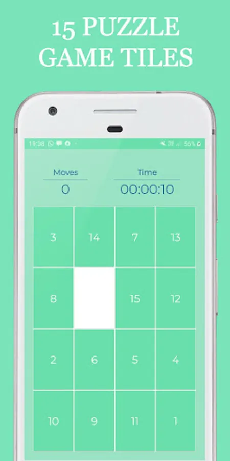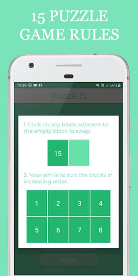 15 puzzle is a Sliding Puzzle that consists of a frame of numbered square tiles in random order with one tile missing. The goal of the puzzle is to place the tiles in order by making sliding moves that use the empty space.