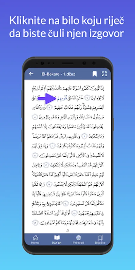 The first application in our area that allows users to click on any word and thus hear its pronunciation in Arabic. This option is especially useful for beginners and those who want to improve the pronunciation of harps.