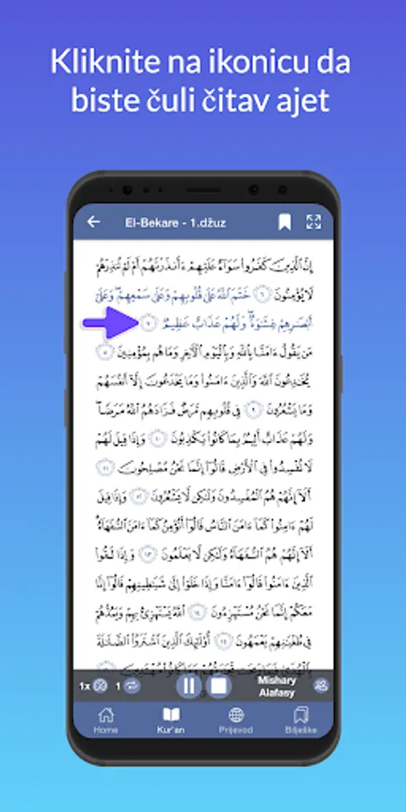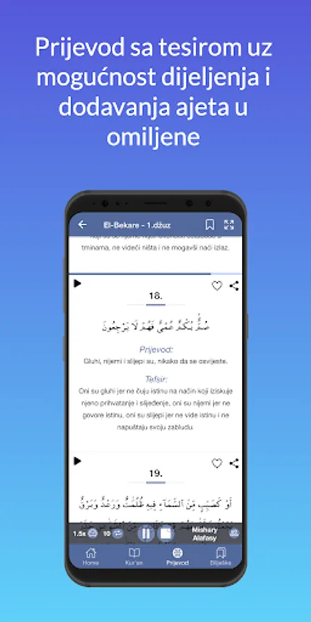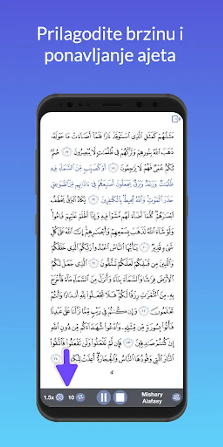 - Reproduction of individual verses with the possibility of choosing a teacher, adjusting the speed and number of repetitions