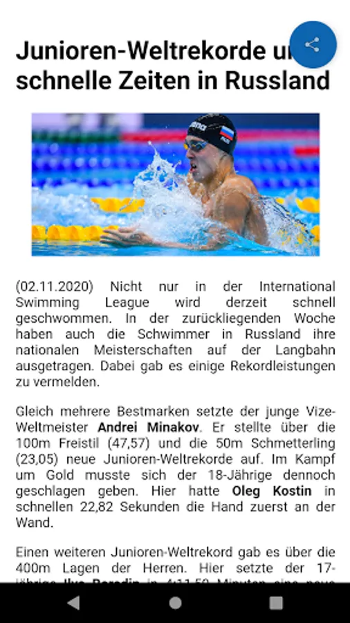 - Daily extensive news from swimming
