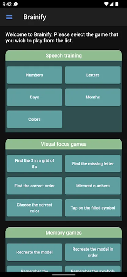 Brainify was designed to take care of your brain across four categories: speech training, visual focus, memory and maths.