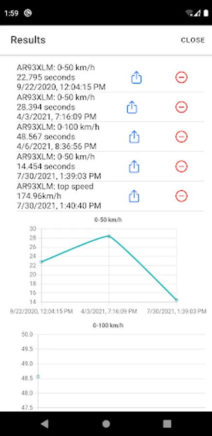 Inside the app, there is an option to share your results so that you can show your friends just how fast your car is. For computing the precise time it takes your car to achieve the required speed, the app uses some clever techniques to estimate just when the speed is reached, as the GPS is only providing updates about the speed about once a second once you start moving.