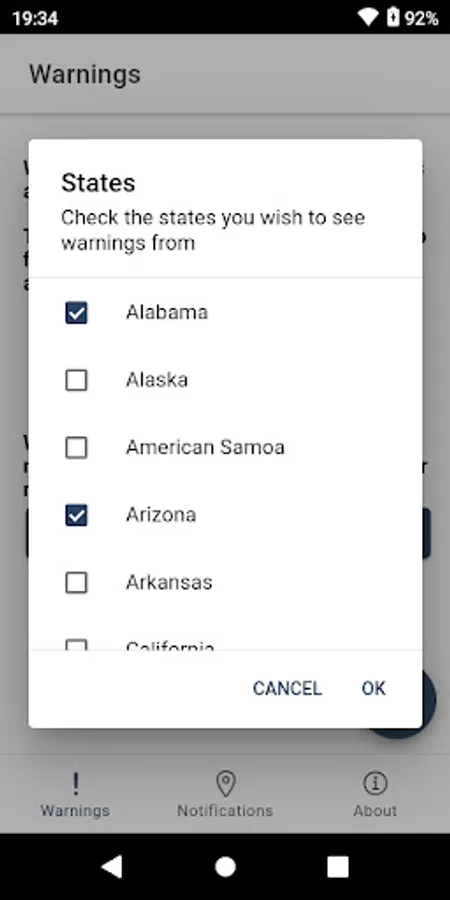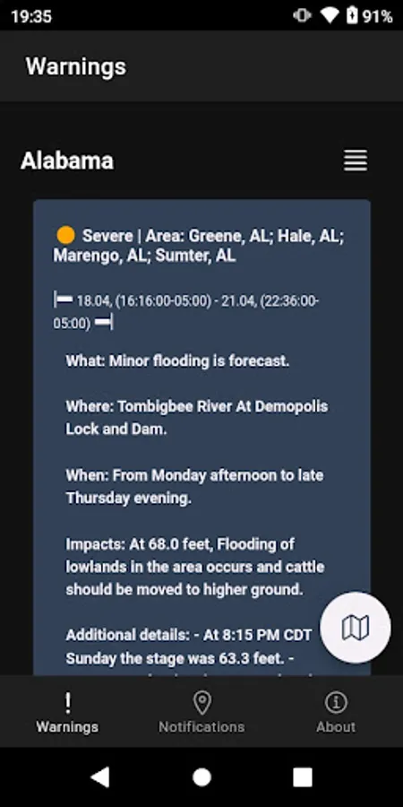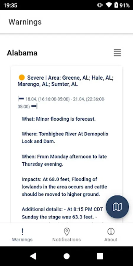 The Warningfy app lets you view weather warnings issued across the US and multiple countries around Europe. You can subscribe to push notifications for one region that you choose, absolutely free. As soon as a warning is issued for that region, it is delivered to your phone so you'll always be alerted.