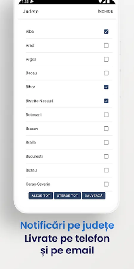 Supported counties: Alba, Arad, Argeș, Bacău, Bihor, Bistrita-Năsăud, Botoșani, Brașov, Brăila, Bucharest, Buzău, Caraș-Severin, Călărași, Cluj, Constanța, Covasna, Dâmbovița, Dolj, Galați, Giurgiu, Gorj, Harghita .