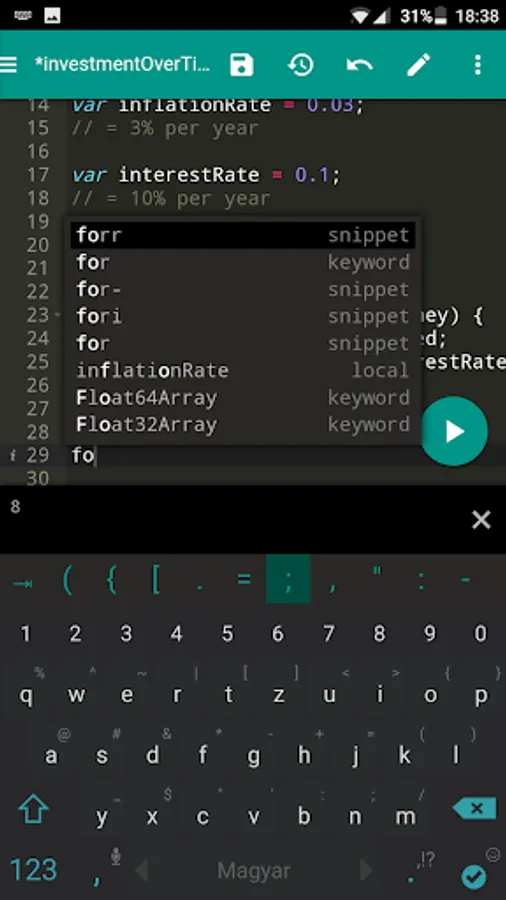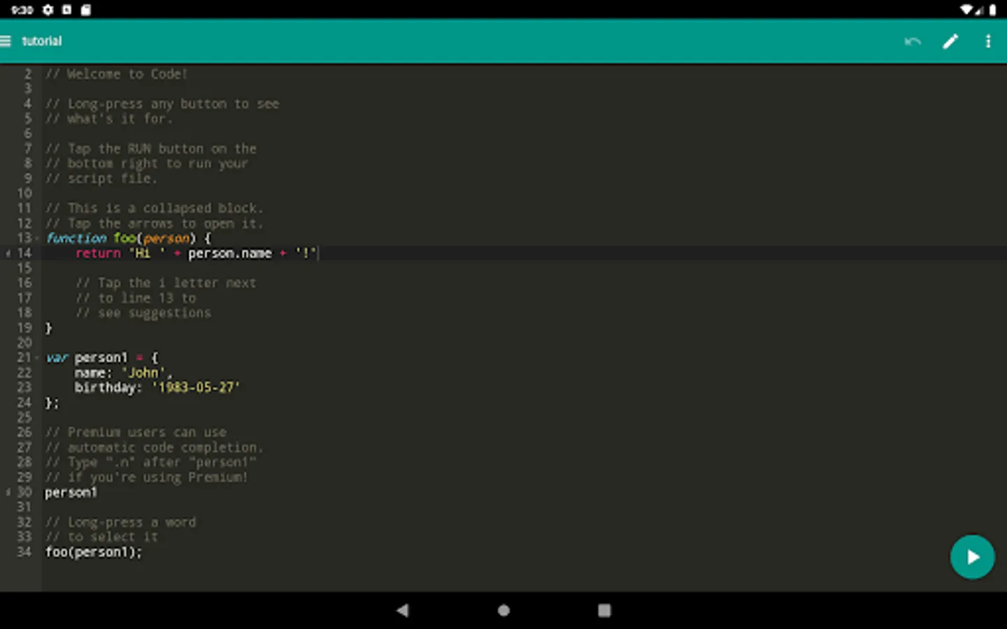 ★ Smart Code Completion in the Premium version - Type less with the keyboard by using code completion, snippets and already used variable names.