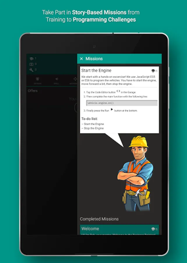 Using this app is a great way to learn programming and JavaScript, but it is not entirely about teaching. More about learning while doing by using JavaScript to program your vehicle. If you know the basics (e.g. what is a variable, function, loop), you'll be fine! :)