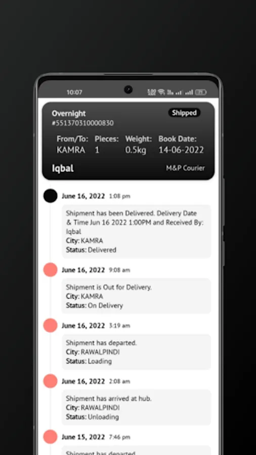 Shipment History: The M&P Courier Tracking Pakistan App maintains a detailed shipment history, allowing you to access past tracking information whenever needed. You can review previous deliveries and track your shipments' entire journey.