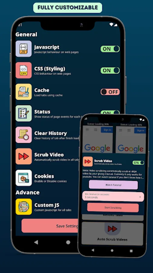 The Multi Tab Browser gives you the option to disable CSS whenever our internet speed is low. When we don't want CSS to load, we don't want it to load. No matter how many tabs are opened, what makes it special is you can disable CSS for all tabs at once. By disabling CSS, websites look more simple and easier to read. It saves time and bandwidth. It also helps websites load faster. You can disable it from settings screen.