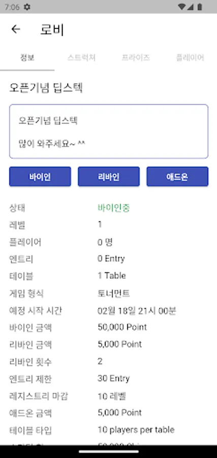 - You can easily check game information such as entry status, current level, and structure configuration of the game currently in progress in Blitz.