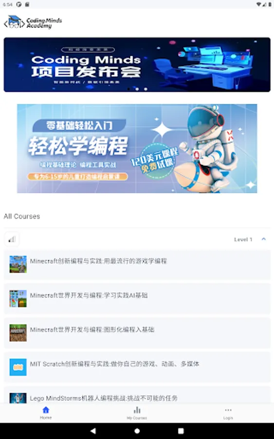 With this mobile platform, students could check class schedule, get class reminder, check feedback and upload the homework and cool projects. We will also publish the newest coding conference and info into this platform, Learn coding with fun!