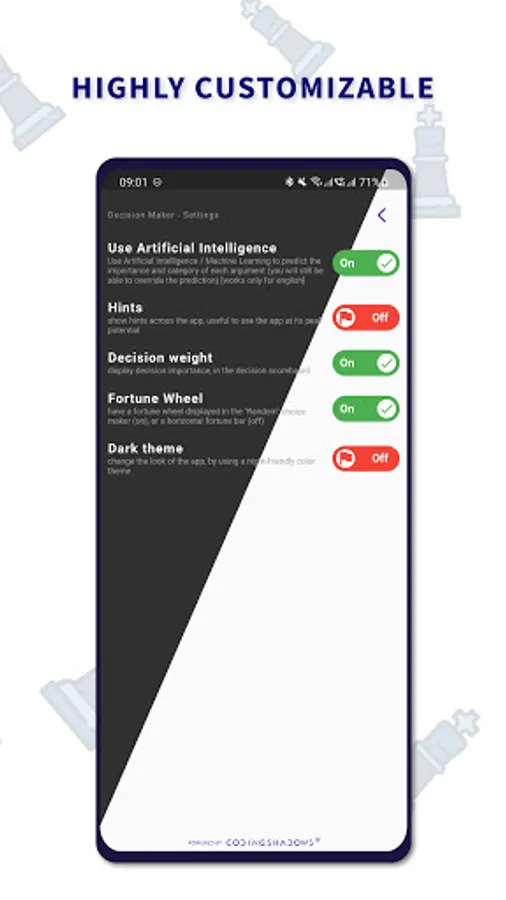 🔥 Highly customizable, with a settings panel, where you can choose a dark theme, a fortune wheel or bar & other cool stuff.