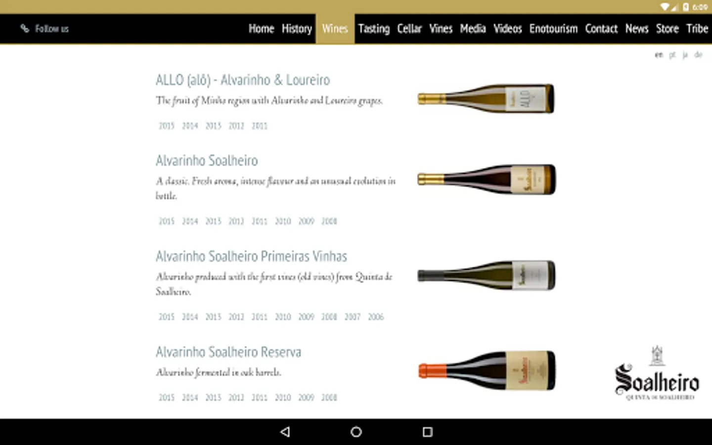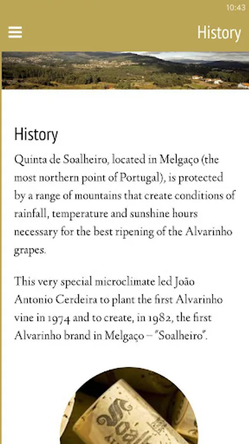 Soalheiro is the first Alvarinho brand in Melgaço (the northern point of Portugal) and one of the first portuguese producers of Alvarinho. Here, the Alvarinho is special, the region is protected by a range of mountains that create the perfect conditions of rainfall, temperature and number of hours of sunshine needed to the better ripeness of the Alvarinho grapes. We hope that you also love the vibrant and elegant style of our passionate wines...