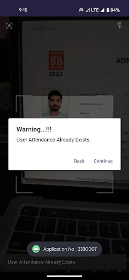When the QR code is scanned, the application instantly verifies the authenticity of the code and retrieves the associated student information from a secure database. The system then cross-references the student's details with the exam schedule to ensure that they are present for the correct exam. Once the verification is complete, the student's attendance is automatically recorded as "present" in the system.