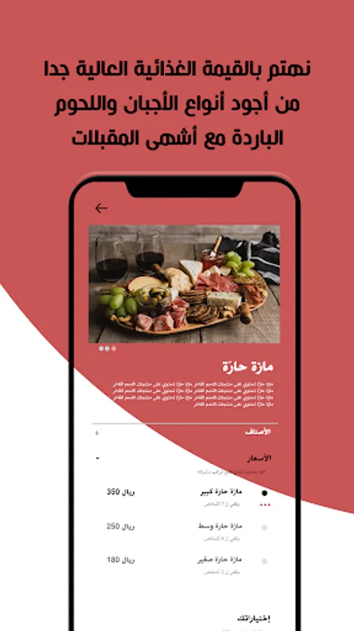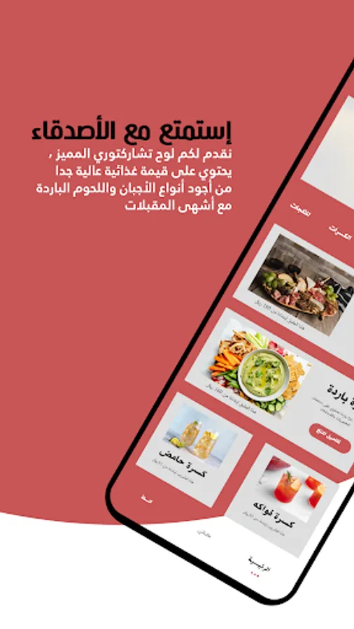 The Mezze and Kesra app offers you a wonderful experience through the distinctive Charcotori plates, which contain high quality nutritional value, and include many cold mezzes that are imported from the most prestigious brands and are assembled in the form of a beautiful plate, so that you can have an enjoyable and unique experience.