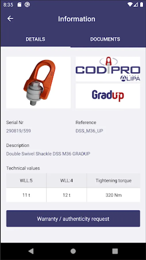 The CODITRACER app is very handy and allows you to have access to the best level of traceability and authenticity information of your CODIPRO lifting rings, whenever and wherever you want.