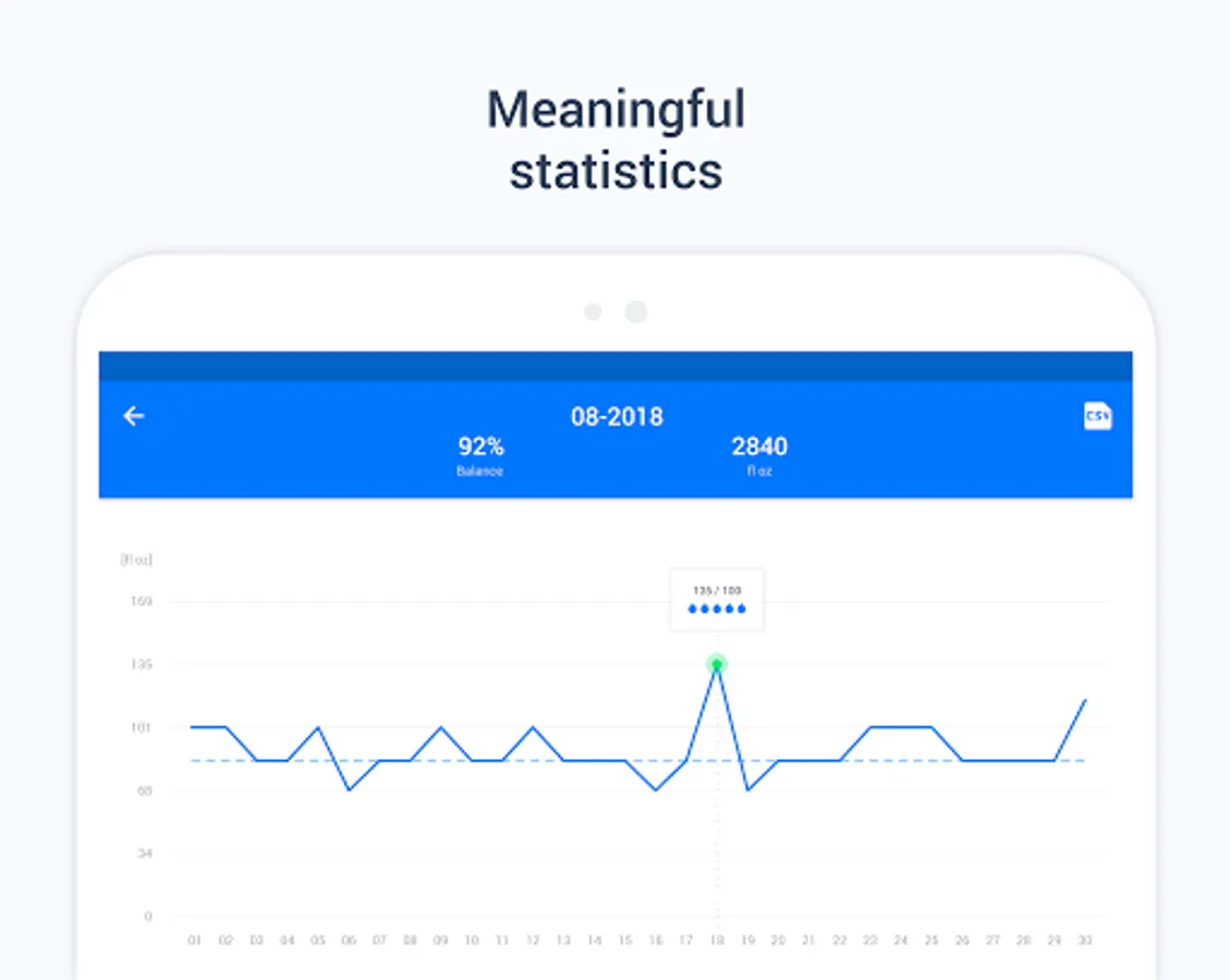 β Get a graphical insight into your water drinking habits with week and month statistics
