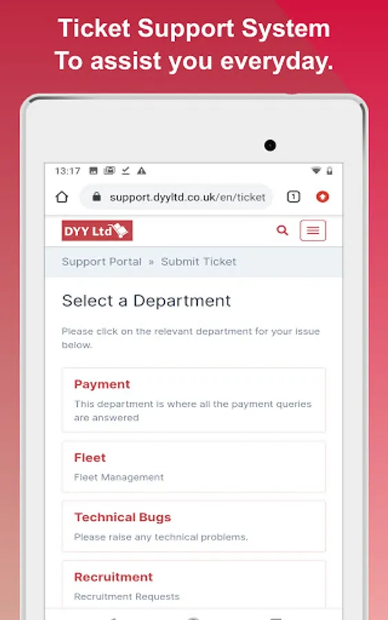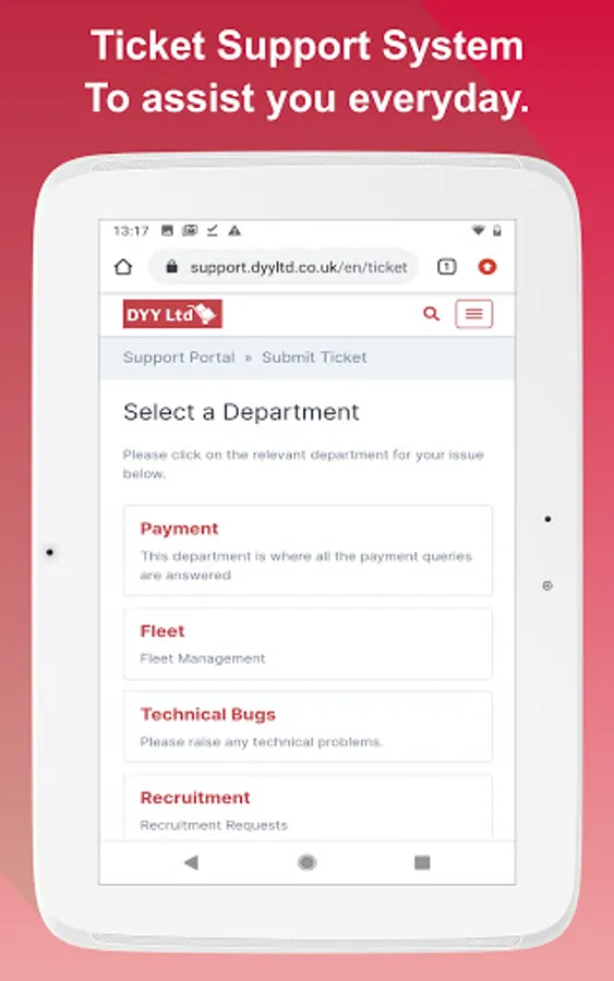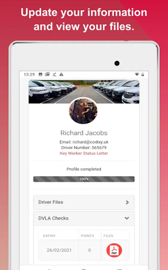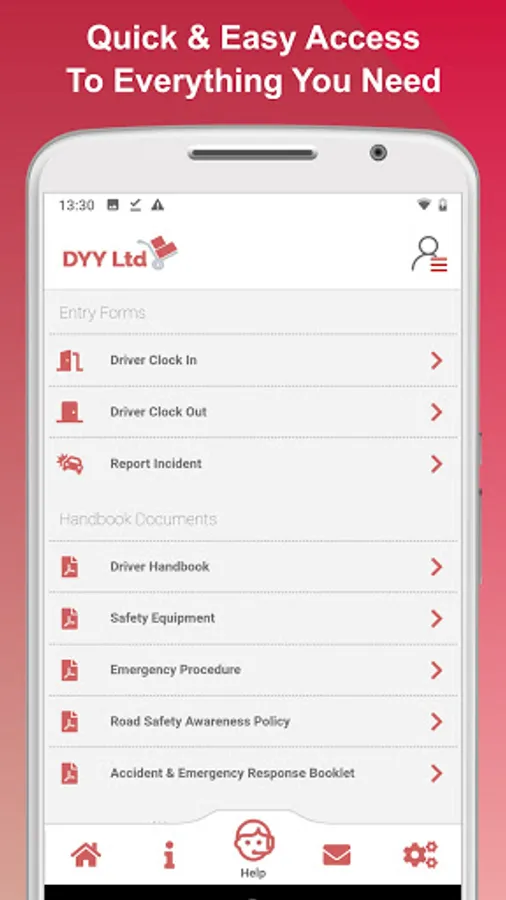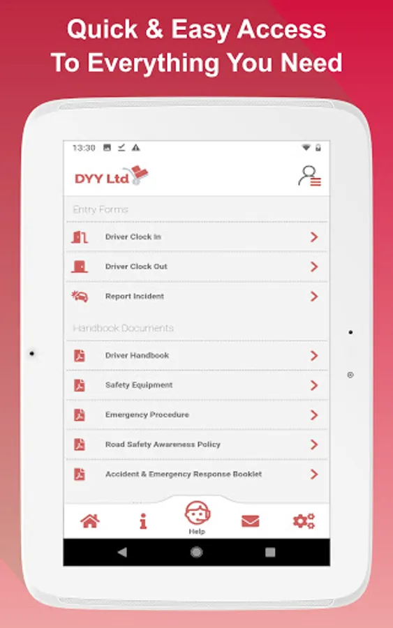 The official Dyy Ltd app enables drivers to access their invoices, change their personal information, view hand books, submit required daily forms and receive updates and notifications from assigned managers.