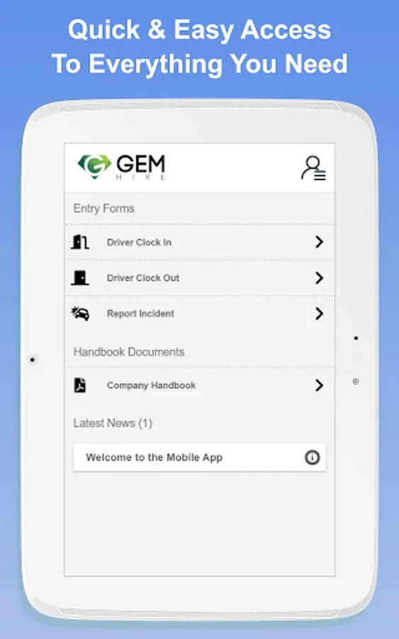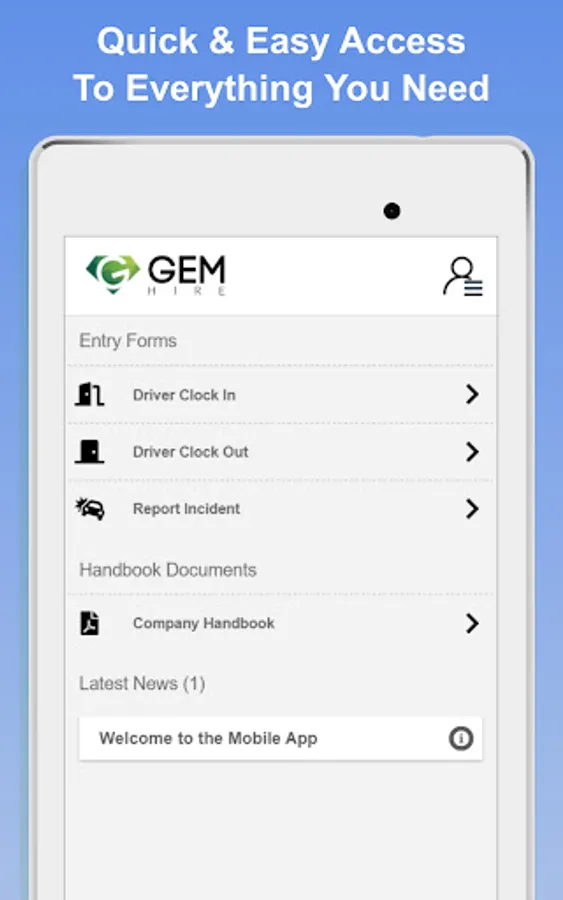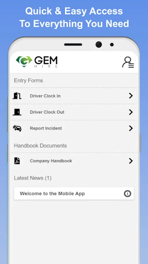 The official Gem Hire Limited app enables drivers to access their invoices, change their personal information, view handbooks, submit required daily forms and receive updates and notifications from OSMs