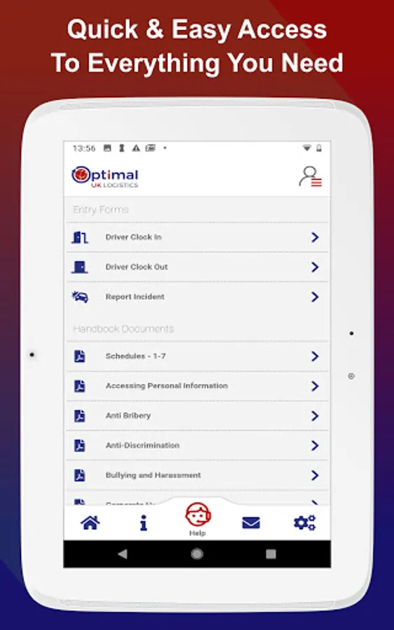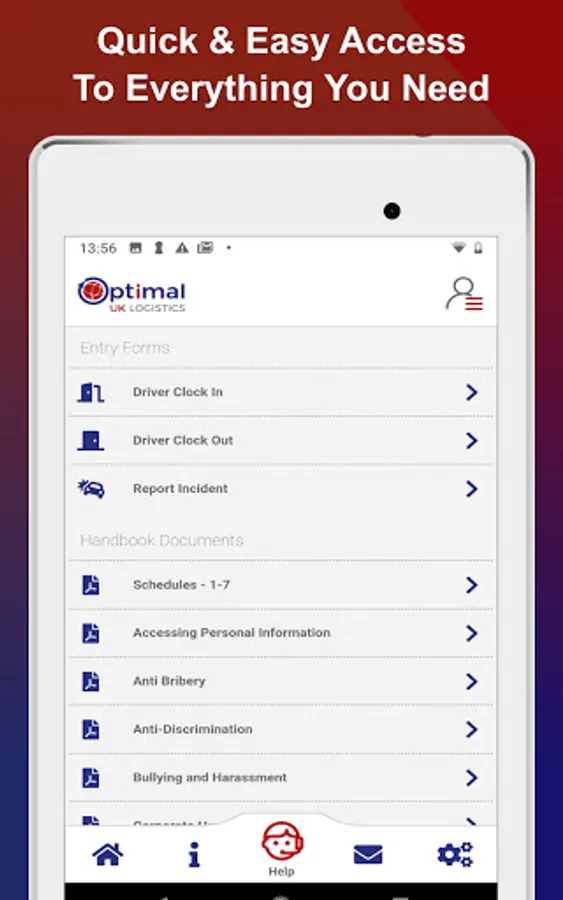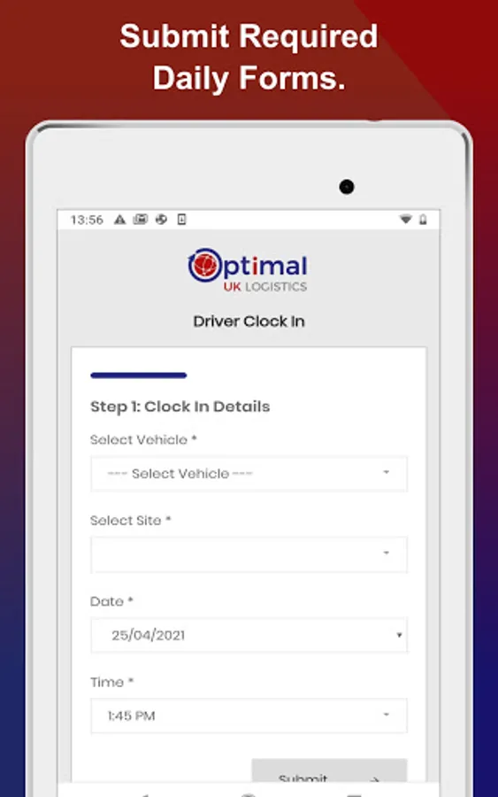 The official Optimal UK Logistics app enables drivers to access their invoices, change their personal information, view hand books, submit required daily forms and receive updates and notifications from assigned managers.