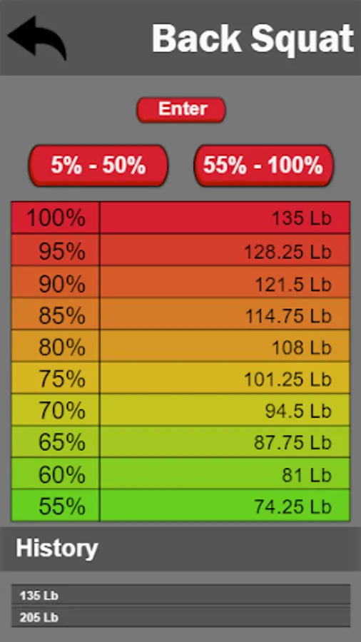 This app helps you calculate your PR percentages, save your PRs, and tells you how much weight do you have to put.