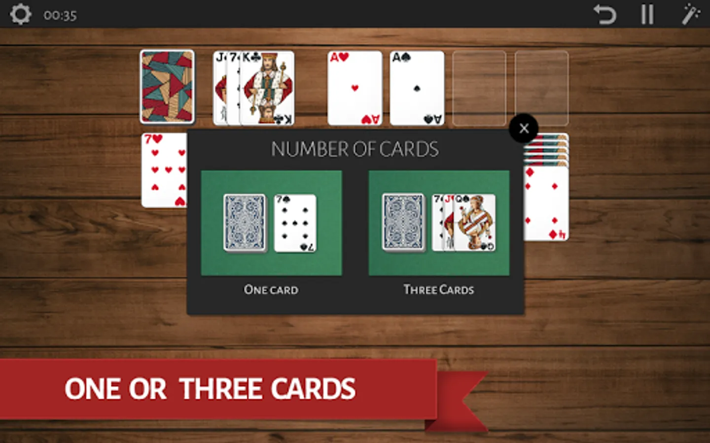 This version is played with a one or 3-card waste when flipping through the deck and is both easy to learn and still challenging for expert players.