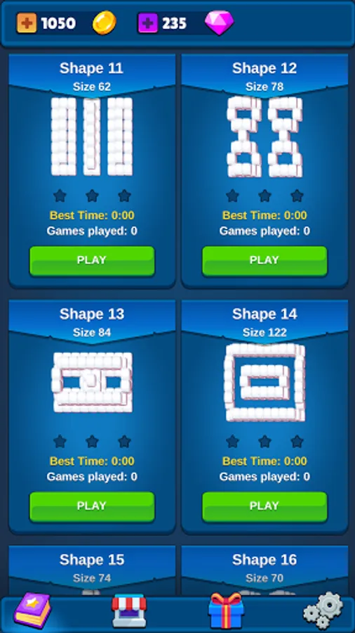 Take apart tiles of varying difficulty. Find pairs of identical pieces on the board as fast as possible, setting new speed records.