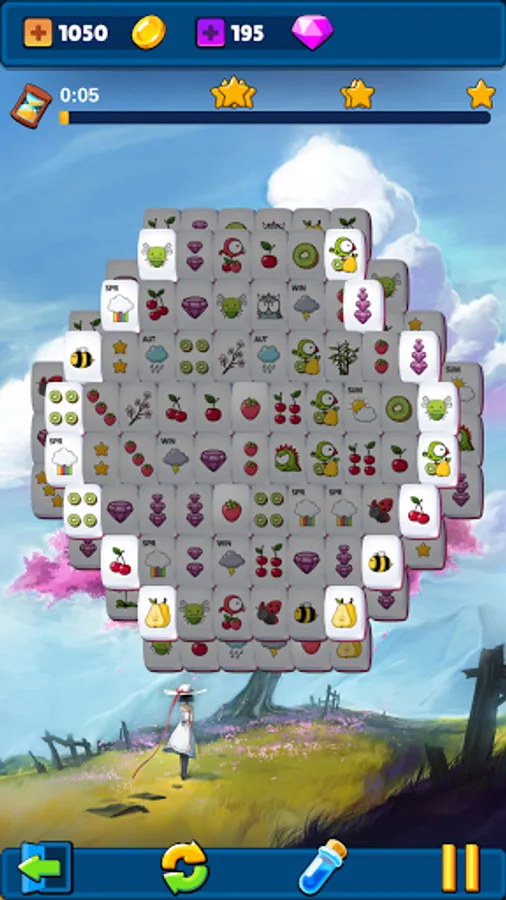 Mahjong Universe offers many sets of differently themed tiles. Play and earn coins. Unlock new mahjong sets with magic diamonds.
