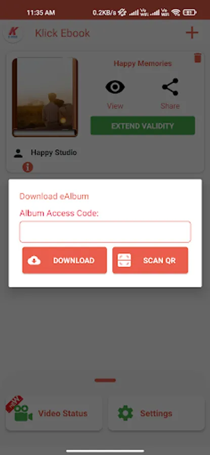 Step 1: After downloading app, just enter Album Access code/key. Your album will start downloading immediately.