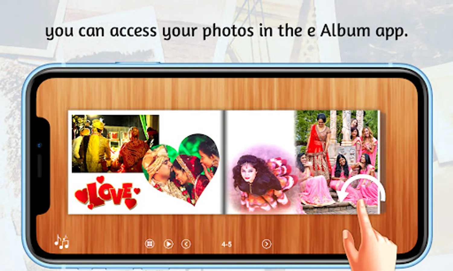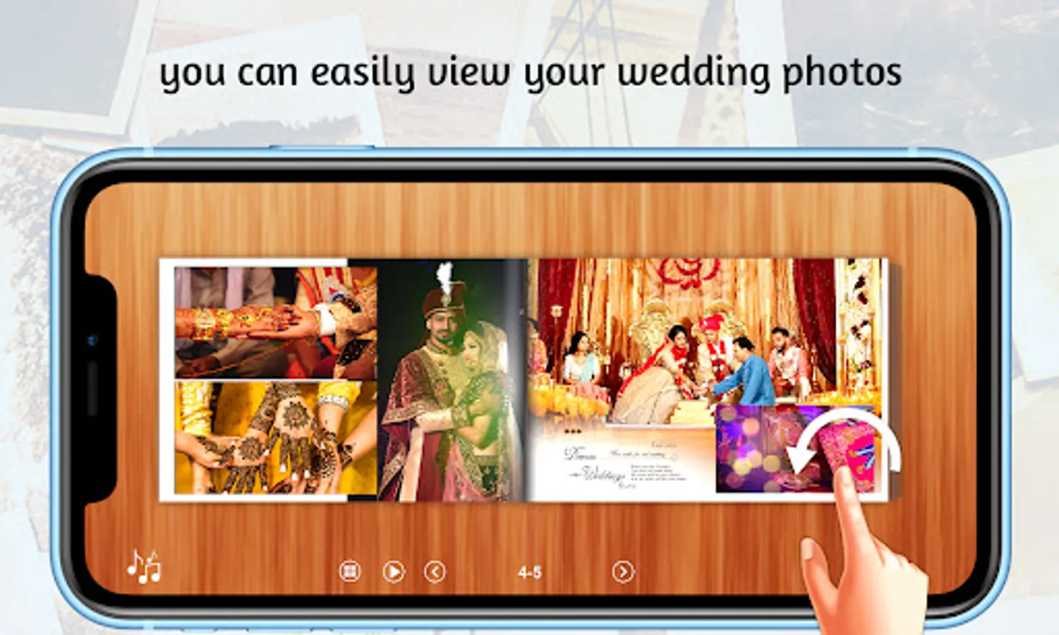 You can use Smartbook ealbum app to view your wedding album, birthday album, kids party album etc like physical album.