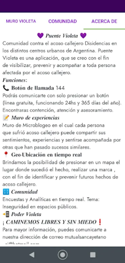Puente Violeta is an application that was created in order to make visible, prevent and accompany any person affected by street harassment.