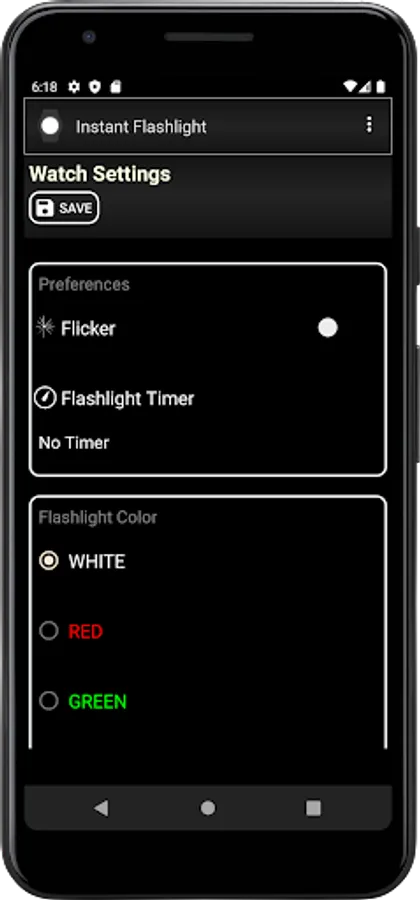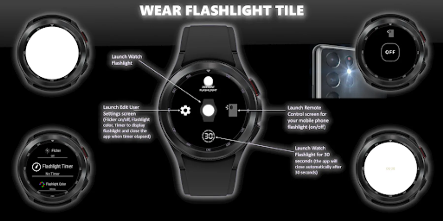 Wear Flashlight Widget (Tile) gives an instant light using the wear OS watch screen.