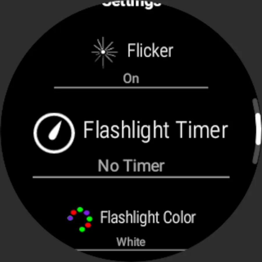 Navigate to Wear flashlight tile>> click on the gear icon on the left and the user settings screen will be displayed.