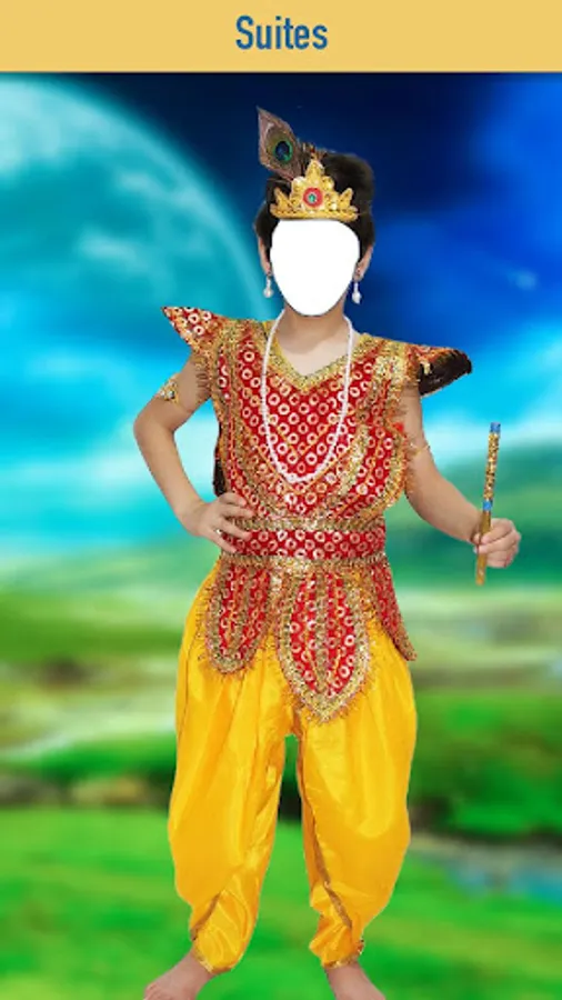 By using our Sri Krishna photo suit editor you can decorate or edit or create your photos or selfiles with devine Sri krishna photo frames suit. you can edit your child hood photo or your beloved kids photo as krishna by using this krishna photo frames editor.