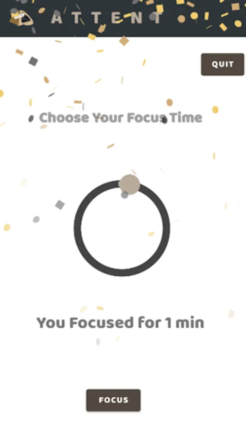 ATTENT helps you be more productive by restricting your access to other apps . Once you are in ATTENT choose your focus time and hit Focus . Your Tent mode will start and there is not way out , You either have to Give up or be Productive .