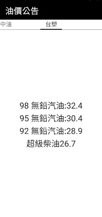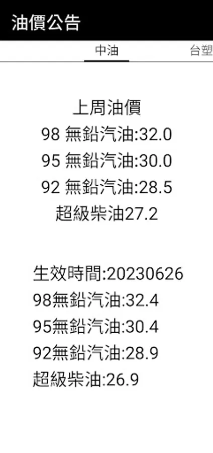 The Oil Price Announcement is a convenient tool that provides users with the function of checking the oil price information of CNPC and Formosa Plastics in real time. Users can quickly check the latest oil price information through this application, and keep abreast of changes in oil prices.