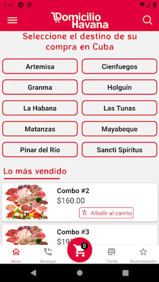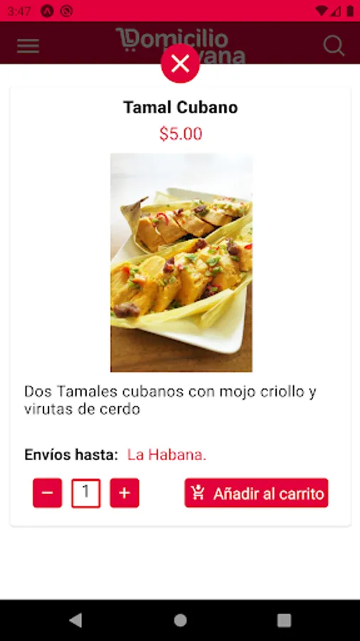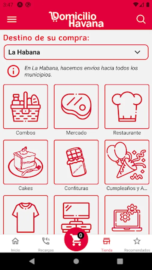 Domicilio Havana is an easy-to-use application: add your products to the cart, select the destination to which you want them to be sent and within one click your order will be ready to be delivered.
