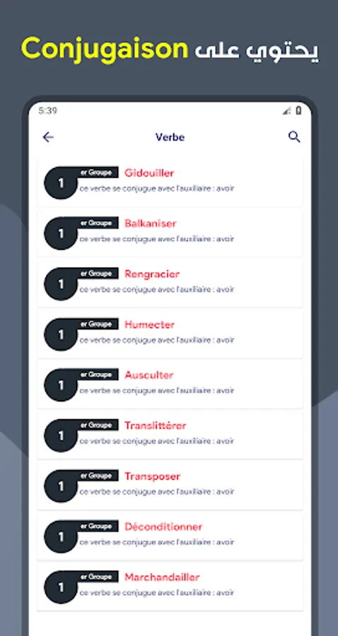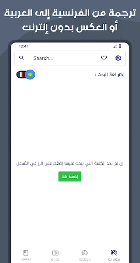 With Dictionary French - Arabic you can easily translate words and text from French to Arabic and from Arabic to French. you can translate the word or the meaning.