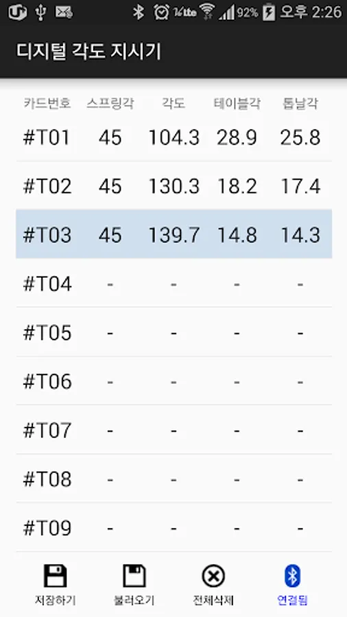 - Using a digital angle of the blade angle indicator table without calculation automatically calculates for each such