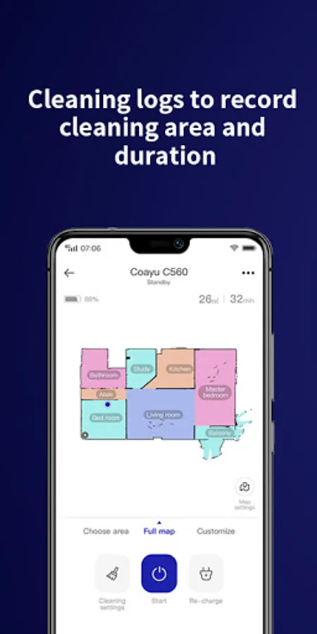 * Mapping: available to check cleaning area, duration and mapping in the APP