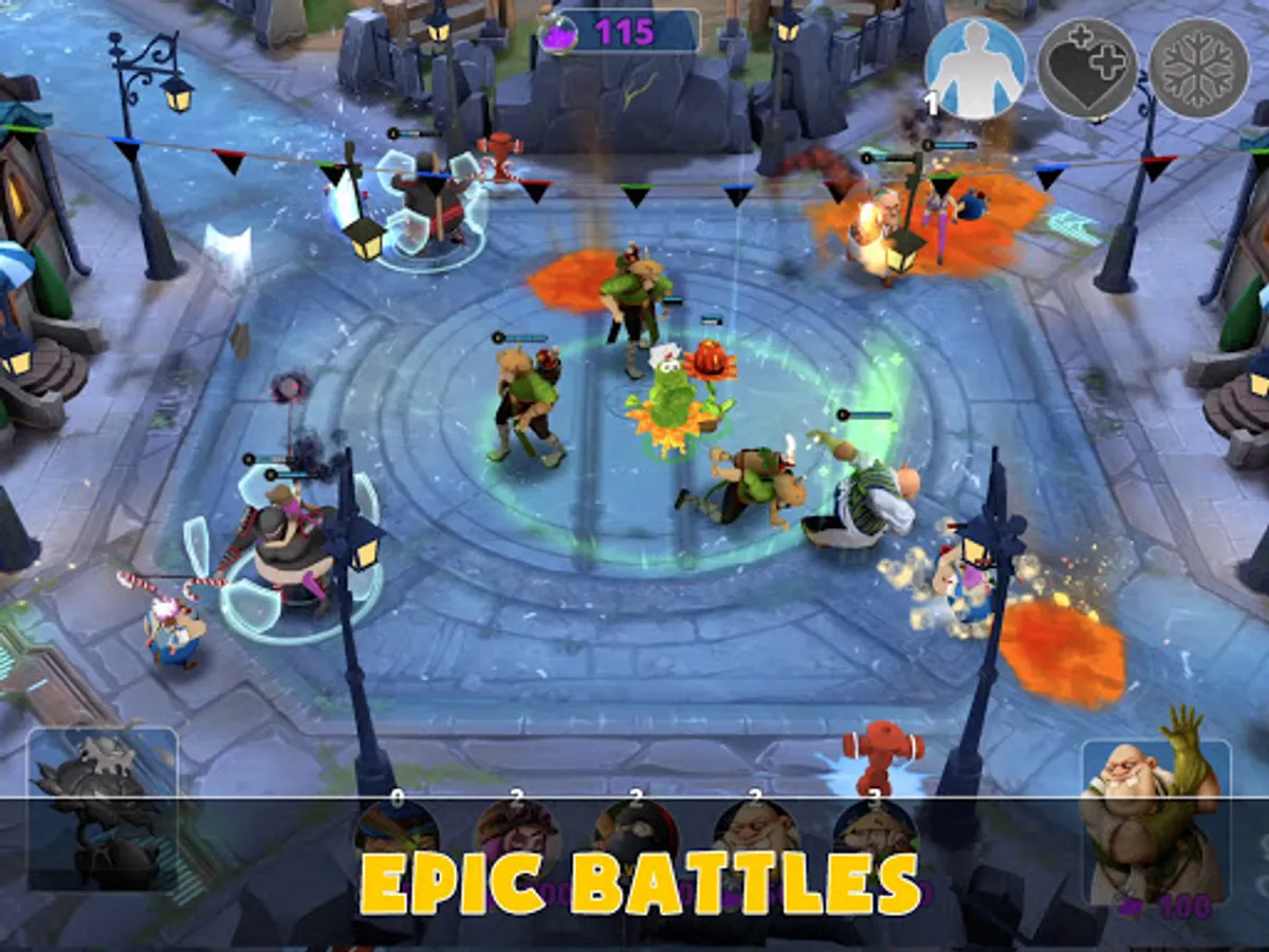 Collect MOBA heroes, equip them, and defend your base. Use plants as traps or towers in the battle arena.