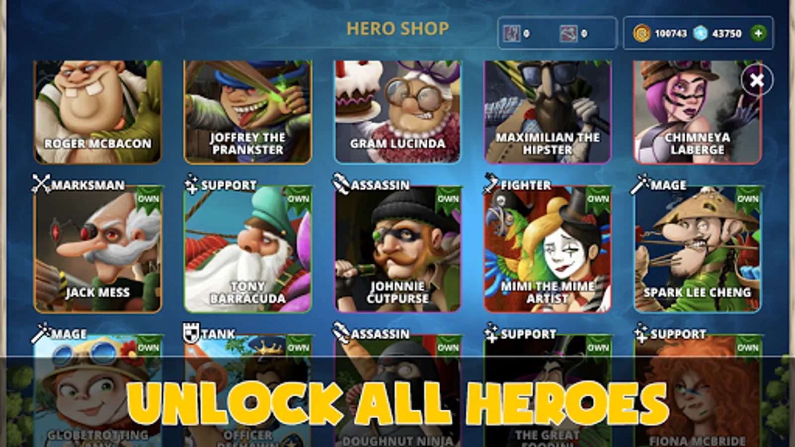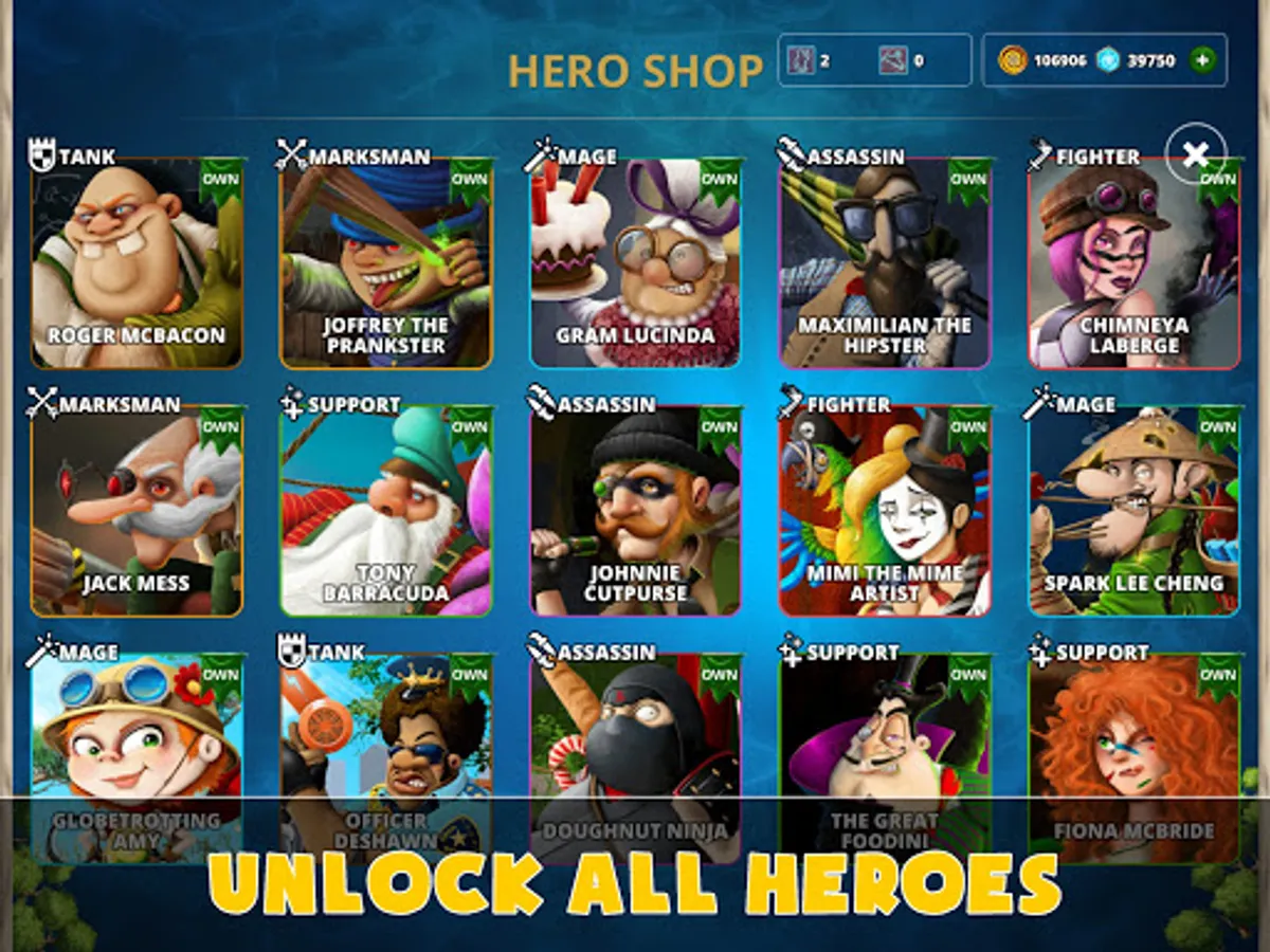 Collect hilarious everyday MOBA (multiplayer online battle arena) heroes: an angry bingo champion granny mage who bakes a killer cake, a warm-hearted math professor turned butcher skilled in close combat battle in the battle arena, a grumpy old-timer marksman in his invention - a speeding wheelchair equipped with lots of guns, and others.