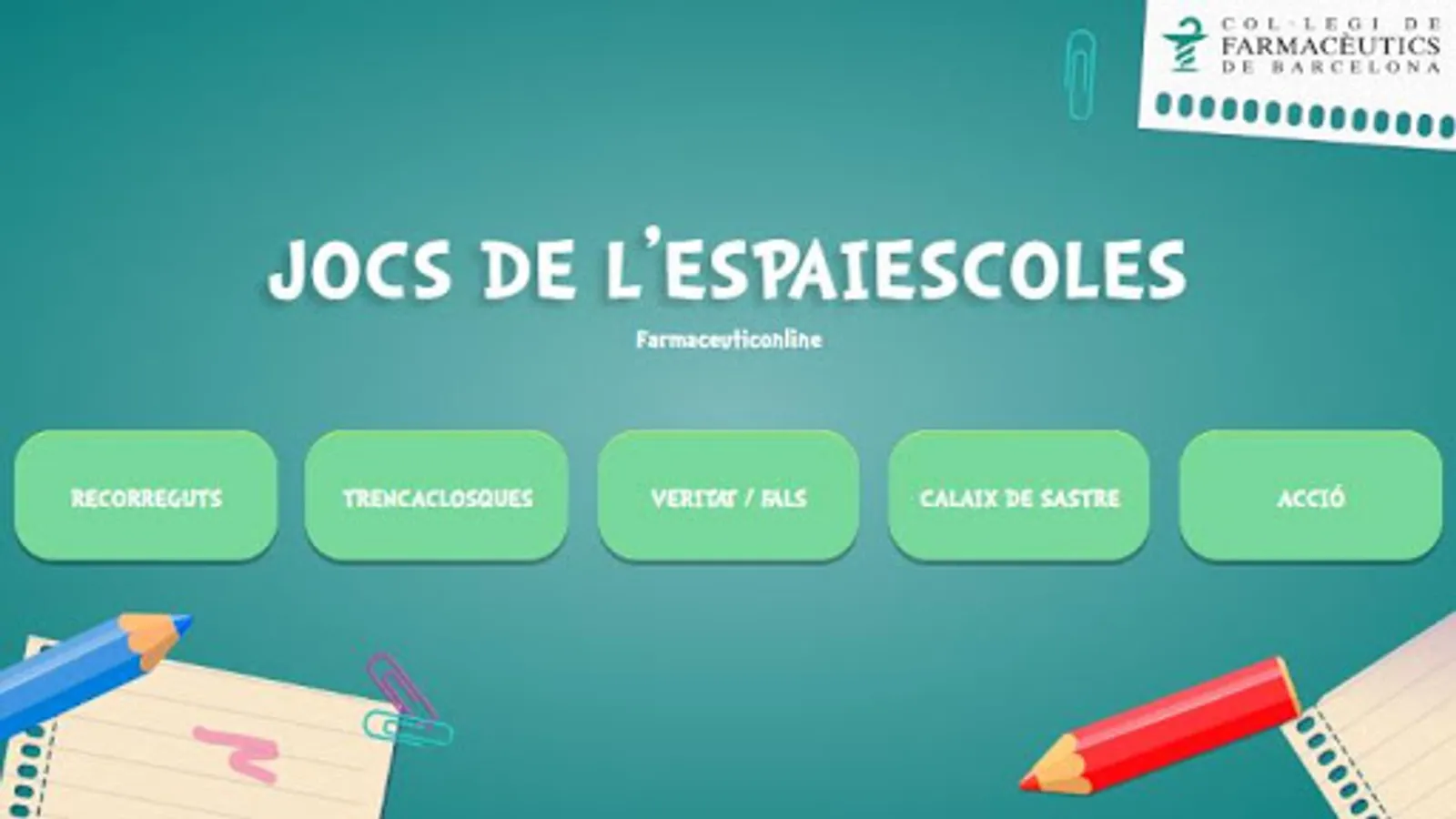 The Espai Escoles website of the School of Pharmacists of Barcelona offers health-related schools to work in the classroom. Among these contents is a selection of games so that the children learn about the importance of prevention in health.